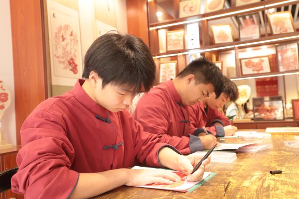 隨后,在導(dǎo)師的悉心指導(dǎo)下,學(xué)生們紛紛化身為小小匠人,全神貫注地投入到手工創(chuàng)作的世界。在刻紙畫(huà)區(qū)域,他們細(xì)心勾勒線條,精準(zhǔn)雕琢每一細(xì)節(jié),每一刀一劃都透露出對(duì)美的追求與對(duì)傳統(tǒng)的敬畏。而在剪紙區(qū),五彩斑斕的紙張?jiān)趯W(xué)生們靈巧的雙手下漸漸幻化為生動(dòng)的圖案,每一幅作品都蘊(yùn)含著創(chuàng)作者獨(dú)特的情感與想象,成為了非遺文化與現(xiàn)代創(chuàng)意完美融合的見(jiàn)證。